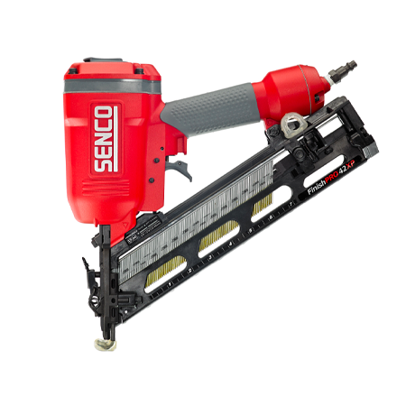 Built with SENCO’s renowned durability and performance, the FinishPro®42XP is the flagship tool for the professional finish carpenter. Featuring SENCO’s patented Never-Lube® design, the FinishPro®42XP eliminates the need for daily maintenance as well as the risk of oil spilling onto your worksurface due over oiling. Outfitted with a Magnesium main body, reinforced metal air cylinder, and high-strength driver the FinishPro®42XP is an extremely durable and lightweight tool that is perfect for all day use. The high-strength driver of the FinishPro®42XP allows the user to consistently drive 15-gauge 2-½” finish nails through the densest materials.
